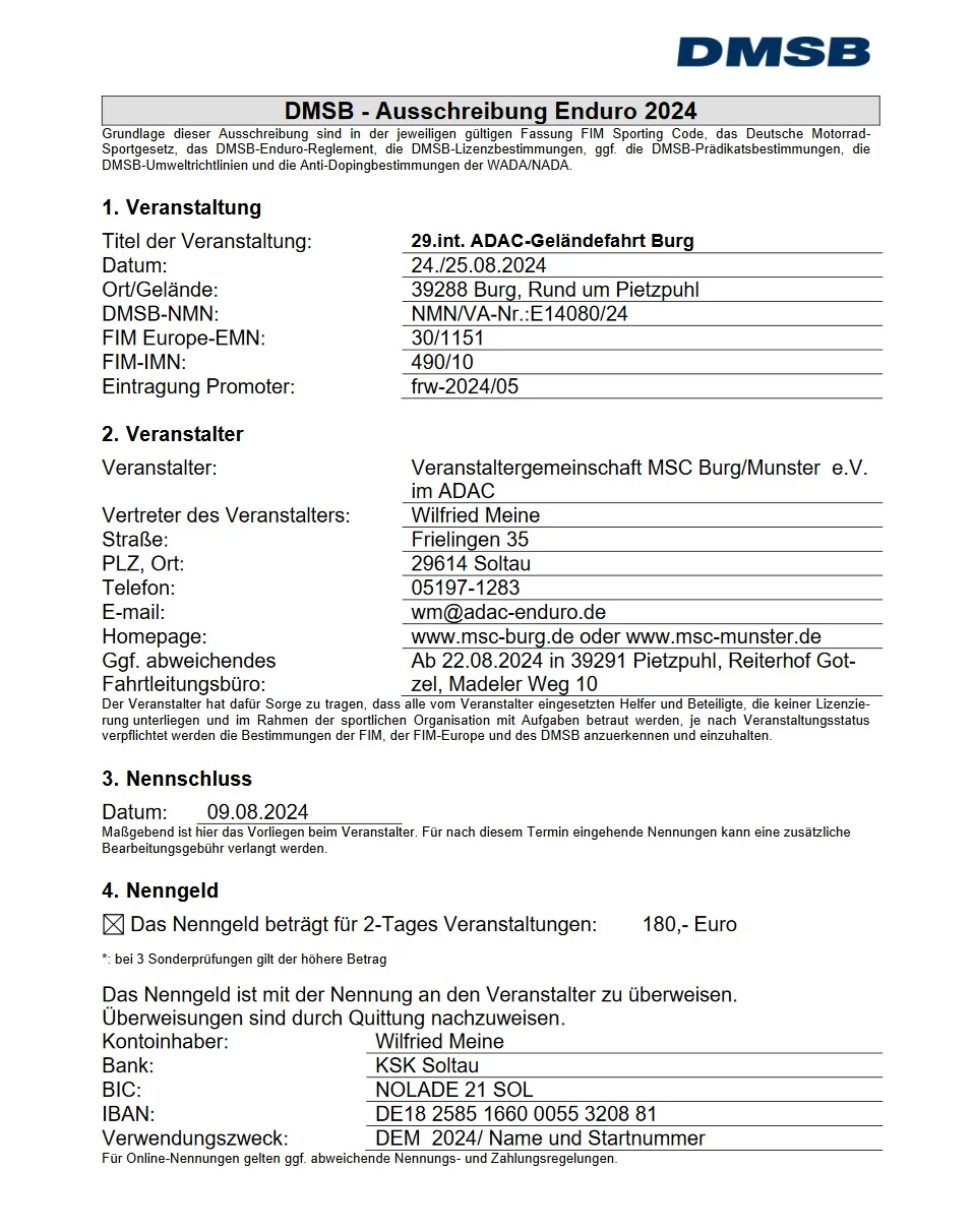 Genehmigte DMSB/ADAC-Ausschreibung |